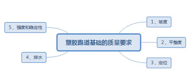 橫向<1%(彎道8%、直道5%、半圓區(qū)5%),縱向<1%,跳高區(qū)小于0。4%,表面應(yīng)該平坦光滑,排水暢通。